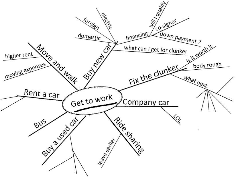 This is a visual note-taking technique that diagrams your thought-processes. One idea will stimulate many other related ideas.
