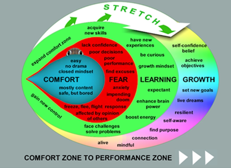 However,  it is outside the comfort zone that learning and growth happen.  It is where you acquire skills, live your dreams, solve problems, gain control and boost your energy and brain power.